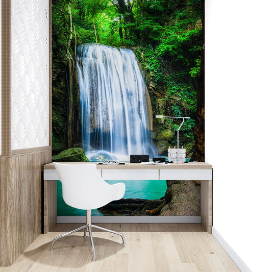 Waterfall Forest Nature Green Wallpaper Mural,Self-Adhesive Peel And Stick 3D Wall Decal,Designer Removable Wall Decor