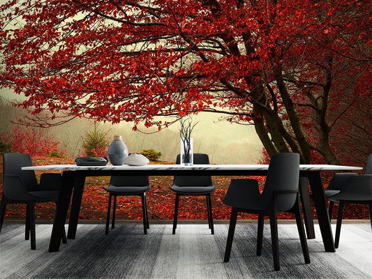 Maple Leaves Forest Seasons Red Wallpaper Mural,Self-Adhesive Peel And Stick 3D Wall Decal,Designer Australian Company Wall Decor