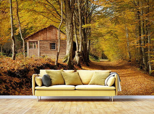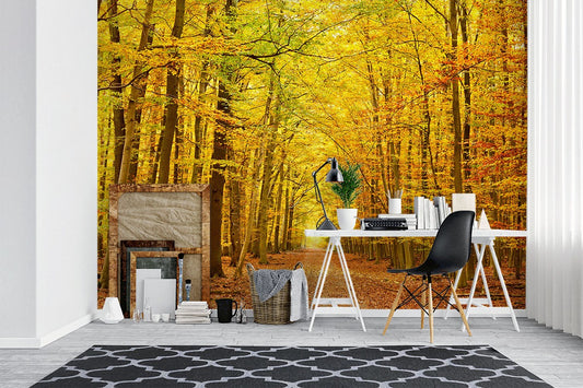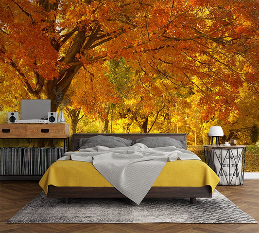 Fallen Leaves Forest Seasons Yellow Wallpaper Mural,Self-Adhesive Peel And Stick 3D Wall Paper,Australian Company Bedroom Wall Decor
