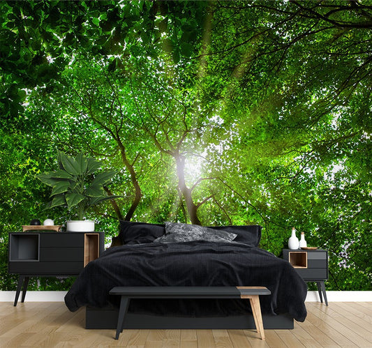 Direct Sunlight Forest Green Wallpaper Mural,Self-Adhesive Peel And Stick 3D Wall Paper,Removable Australian Company Wall Decor