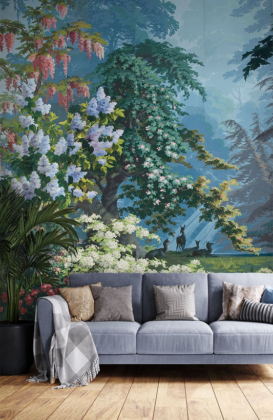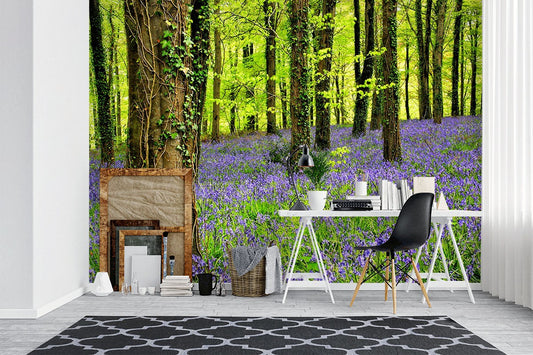Lavender Meadow Forest Green Wallpaper Mural,Self-Adhesive Peel And Stick 3D Wall Decor,Bedroom Designer Wall Decor