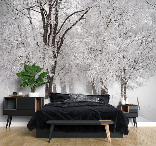 Snow Forest White Wallpaper Mural,Self-Adhesive Peel And Stick 3D Wall Decal,Bedroom Removable Wall Decor