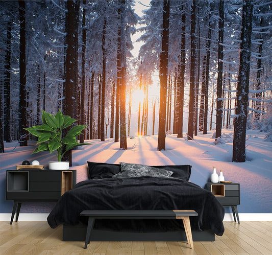 Winter Snow Forest Seasons White Wallpaper Mural,Self-Adhesive Peel And Stick 3D Wall Paper,Designer Bedroom Wall Decor