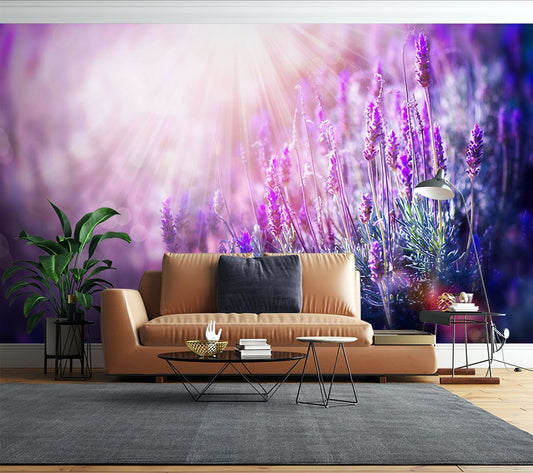 Lavender Sunshine Forest Plant Purple Wallpaper Mural,Self-Adhesive Peel And Stick 3D Wall Decal,Bedroom Australian Company Wall Decor