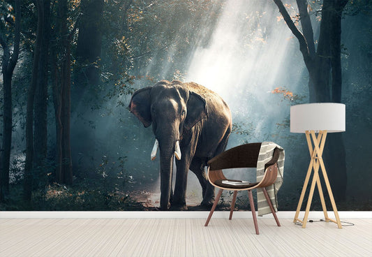 Elephant Forest Wild Animals Black Wallpaper Mural,Self-Adhesive Peel And Stick 3D Wall Art,Bedroom Removable Wall Decor