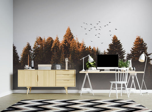 Forest Sunrise Black Wallpaper Mural,Self-Adhesive Peel And Stick 3D Wall Paper,Removable Australian Company Wall Decor