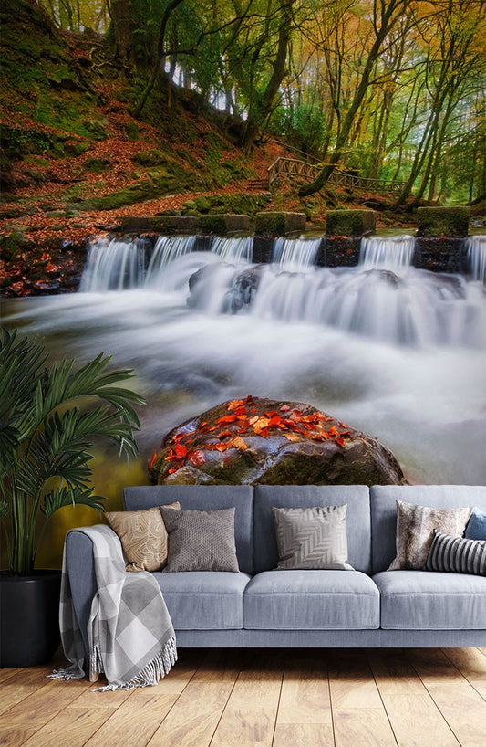 Forest Stream Nature Waterfall White Wallpaper Mural,Self-Adhesive Peel And Stick 3D Wall Decal,Bedroom Australian Company Wall Decor