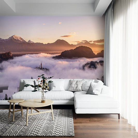 Clouds Forest Nature Mountain Gold Wallpaper Mural,Self-Adhesive Peel And Stick 3D Wall Paper,Australian Company Removable Wall Decor