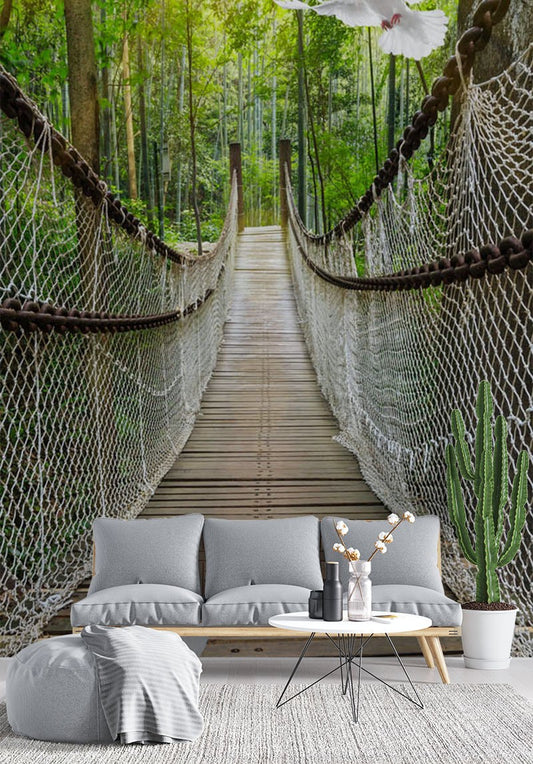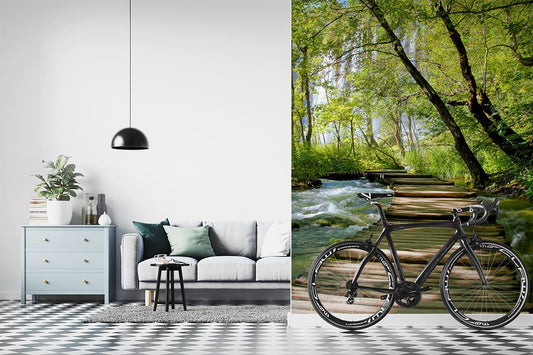 Stream Boardwalk Forest Seasons Green Wallpaper Mural,Self-Adhesive Peel And Stick 3D Wall Decor,Bedroom Australian Company Wall Decor