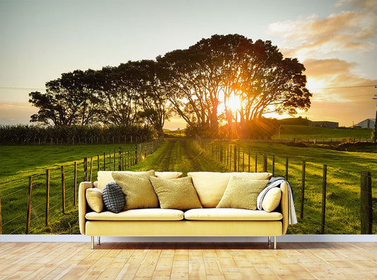 Sunset Grassland Forest Seasons Green Wallpaper Mural,Self-Adhesive Peel And Stick 3D Wall Paper,Australian Company Removable Wall Decor