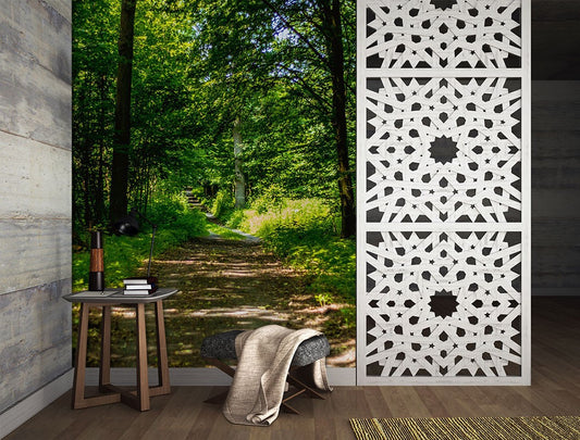 Forest Trail Green Wallpaper Mural,Self-Adhesive Peel And Stick 3D Wall Decor,Designer Bedroom Wall Decor