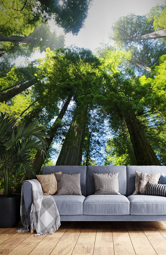 Towering Tree Forest Plant Green Wallpaper Mural,Self-Adhesive Peel And Stick 3D Wall Mural,Australian Company Bedroom Wall Decor