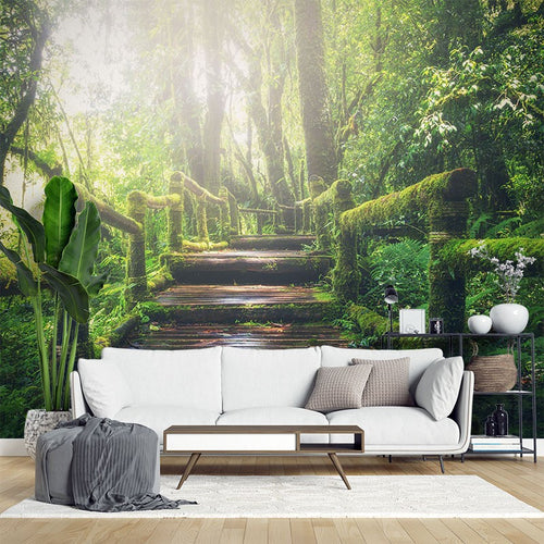 Stairs Forest Green Wallpaper Mural,Self-Adhesive Peel And Stick 3D Wall Decor,Bedroom Removable Wall Decor