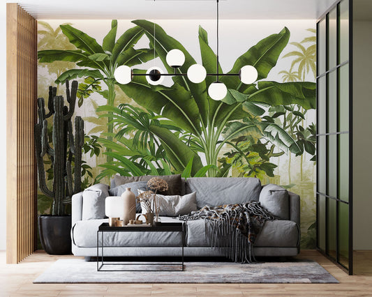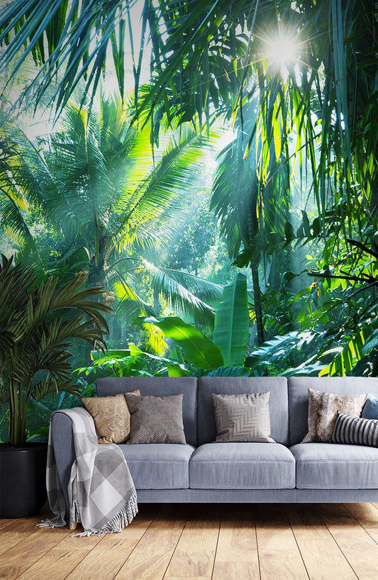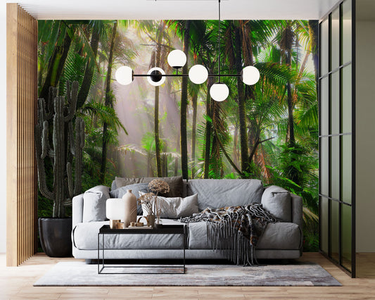 Tropical Trees Forest Jungle Green Wallpaper Mural,Self-Adhesive Peel And Stick 3D Wall Art,Australian Company Removable Wall Decor
