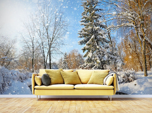 Heavy Snow Forest Seasons White Wallpaper Mural,Self-Adhesive Peel And Stick 3D Wall Decal,Australian Company Removable Wall Decor