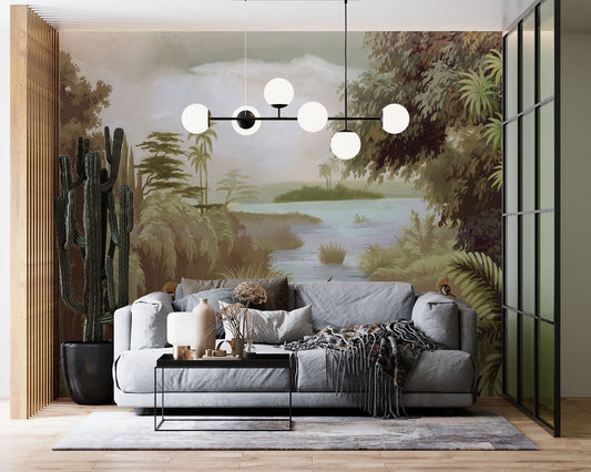 River Forest Nature Rivers Lakes Green Wallpaper Mural,Self-Adhesive Peel And Stick 3D Wall Decal,Removable Designer Wall Decor