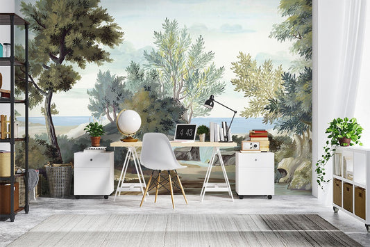 Trees Painting Forest Green Wallpaper Mural,Self-Adhesive Peel And Stick 3D Wall Mural,Removable Australian Company Wall Decor