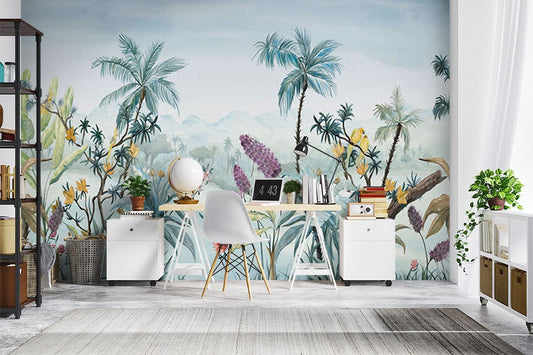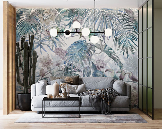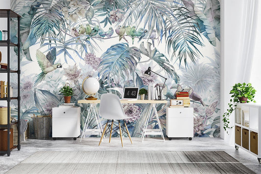 Jungle Birds Forest Jungle Blue Wallpaper Mural