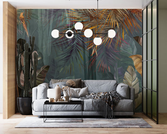 Leaves Birds Forest Jungle Bright Wallpaper Mural,Self-Adhesive Peel And Stick 3D Wall Paper,Bedroom Australian Company Wall Decor