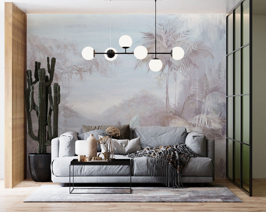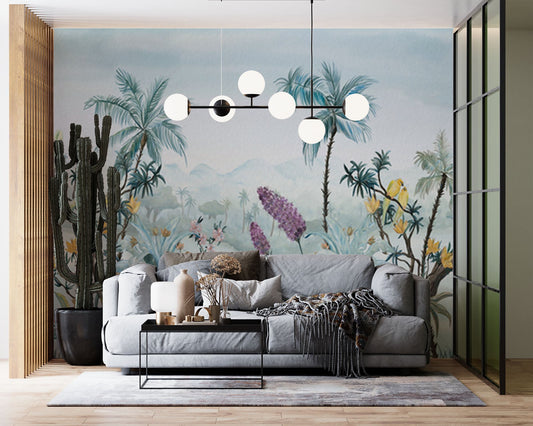 Tropical Trees Forest Jungle Blue Wallpaper Mural