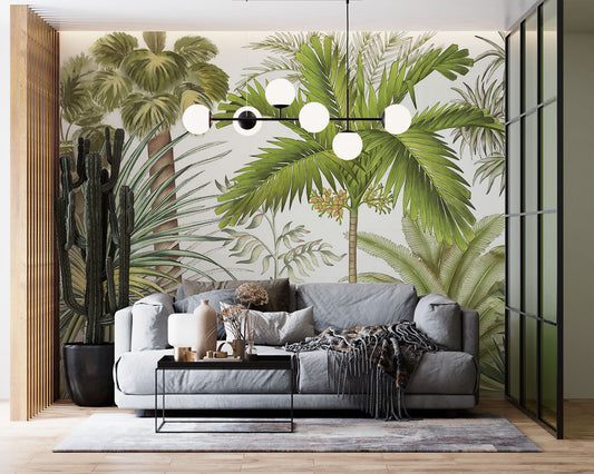 Palm Tree Forest Jungle Green Wallpaper Mural,Self-Adhesive Peel And Stick 3D Wall Decor,Bedroom Australian Company Wall Decor