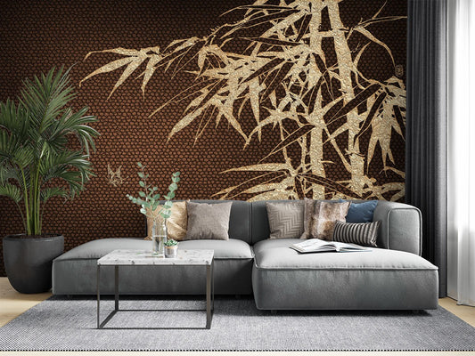 Deciduous Grass Forest Seasons Gold Wallpaper Mural,Self-Adhesive Peel And Stick 3D Wall Decor,Designer Australian Company Wall Decor