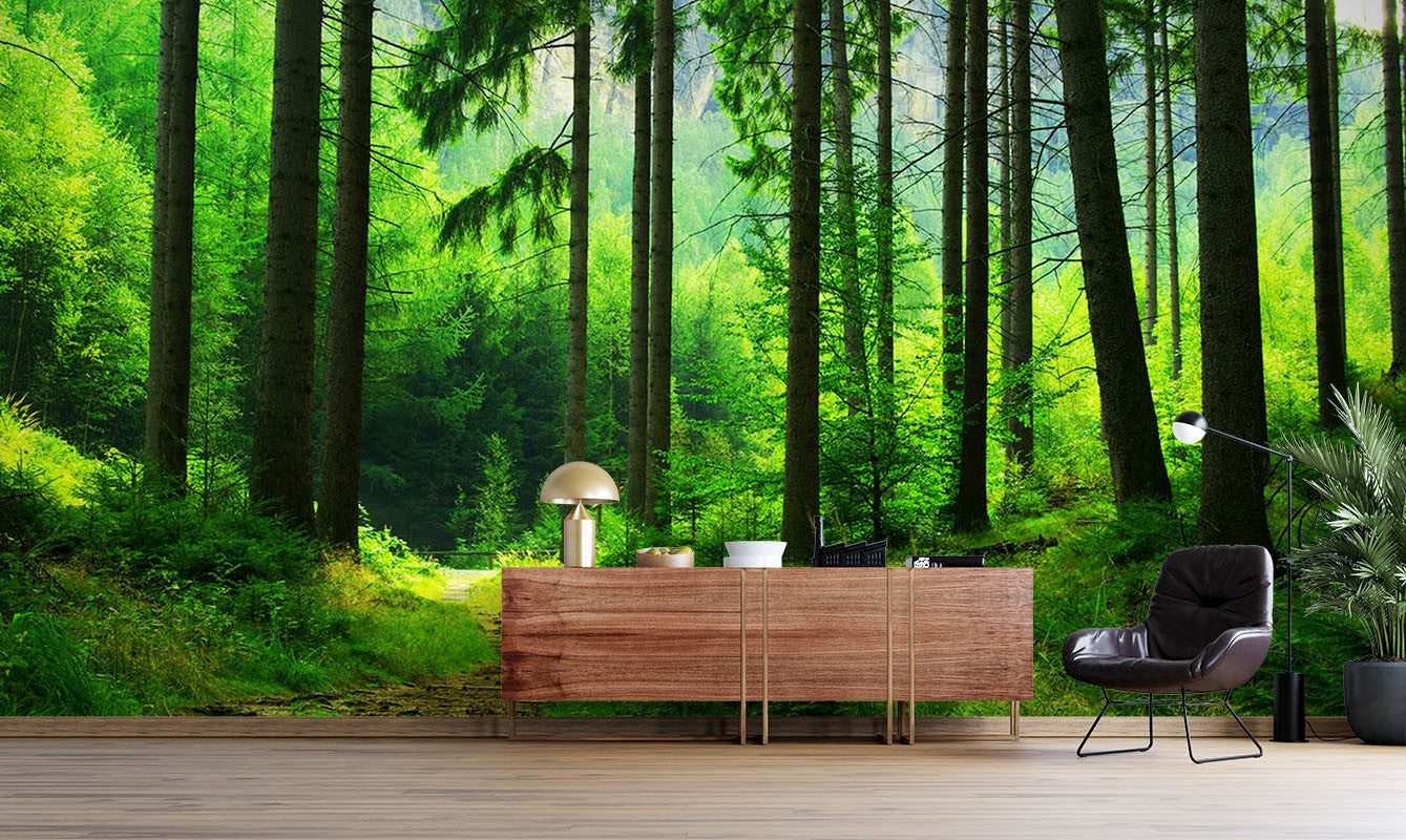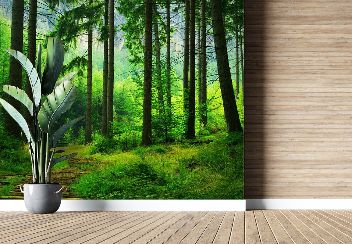 Pine Tree Forest Green Wallpaper Mural,Self-Adhesive Peel And Stick 3D Wall Art,Australian Company Designer Wall Decor