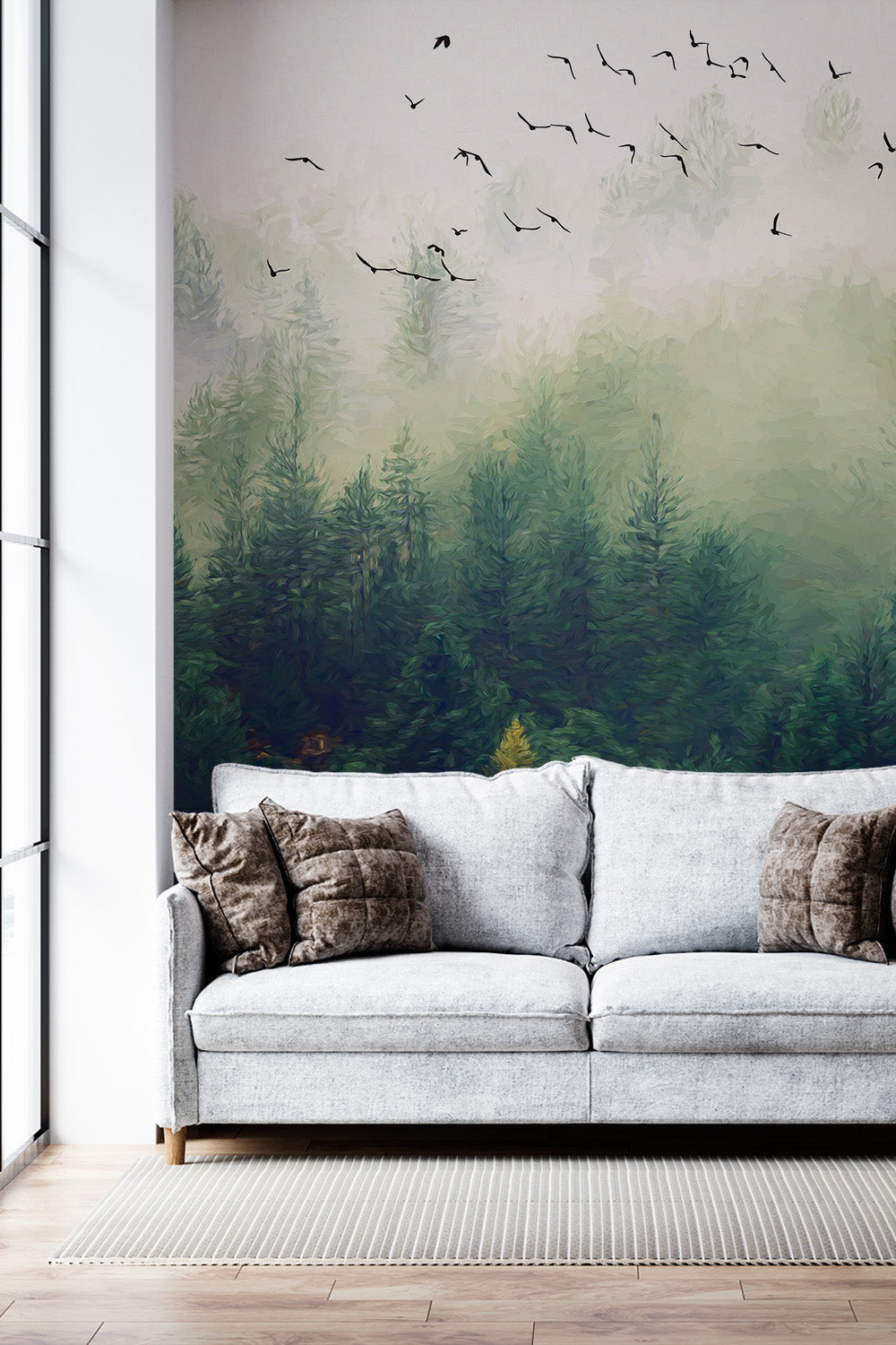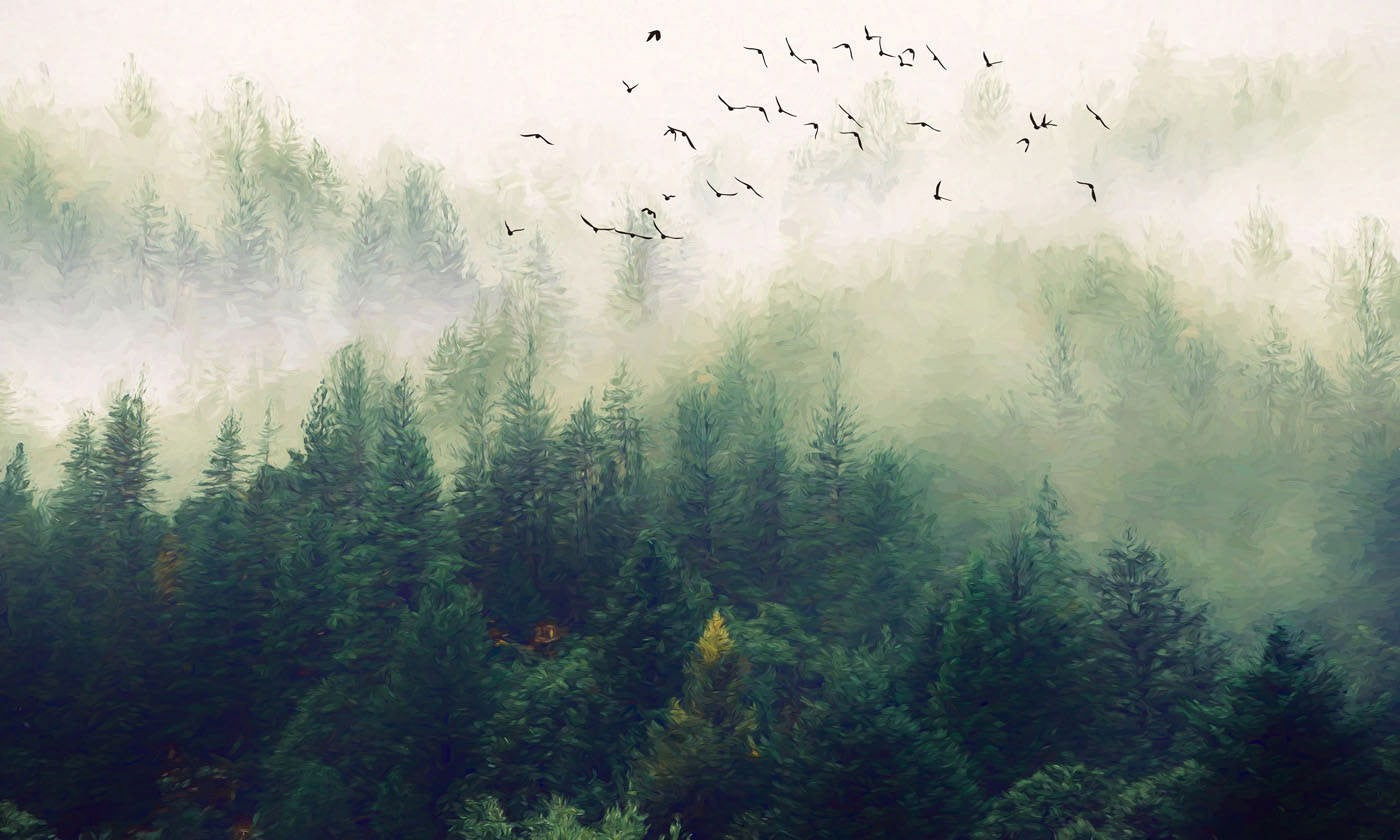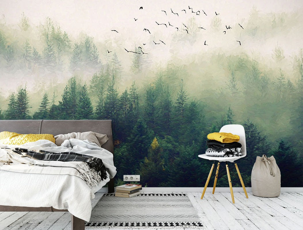 Misty Forest Plant Green Wallpaper Mural,Self-Adhesive Peel And Stick 3D Wall Mural,Australian Company Bedroom Wall Decor