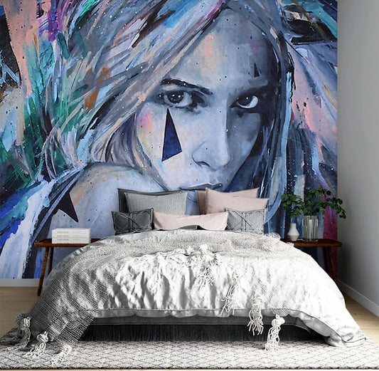 Fashion Women Graffiti Multicolour Wallpaper Mural,Self-Adhesive Peel And Stick 3D Wall Decor,Australian Company Bedroom Wall Decor