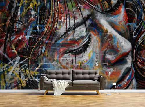 Beautiful Woman Graffiti Colorful Wallpaper Mural