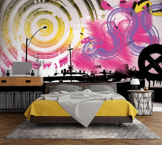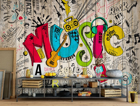 Graffiti Music Multicolour Wallpaper Mural,Self-Adhesive Peel And Stick 3D Wall Decor,Australian Company Designer Wall Decor