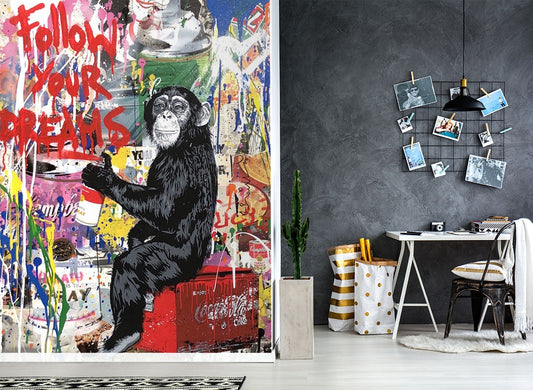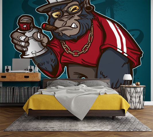 Gorilla Smoking Graffiti Multicolour Wallpaper Mural,Self-Adhesive Peel And Stick 3D Wall Decal,Australian Company Designer Wall Decor