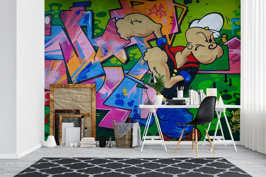 Popeye Graffiti Kids Cartoon Bright Wallpaper Mural,Self-Adhesive Peel And Stick 3D Wall Decal,Removable Australian Company Wall Decor