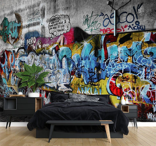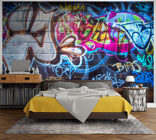 Graffiti Multicolour Wallpaper Mural,Self-Adhesive Peel And Stick 3D Wall Paper,Bedroom Removable Wall Decor