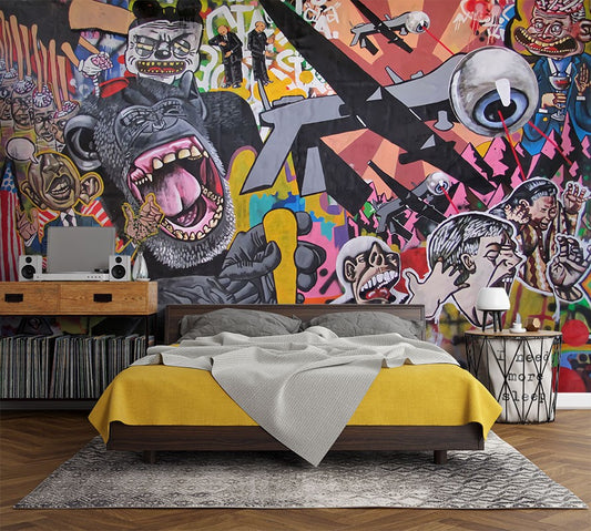 Evil Cartoon Graffiti Multicolour Wallpaper Mural,Self-Adhesive Peel And Stick 3D Wall Paper,Bedroom Australian Company Wall Decor