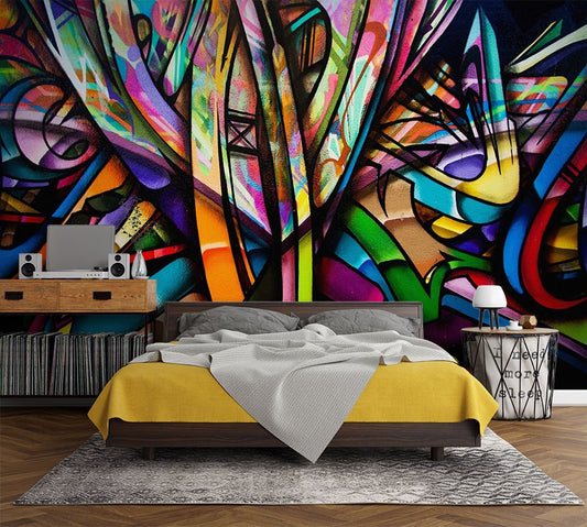 Abstract Pattern Graffiti Multicolour Wallpaper Mural,Self-Adhesive Peel And Stick 3D Wall Decor,Removable Designer Wall Decor