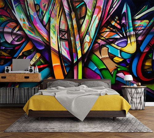 Abstract Pattern Graffiti Multicolour Wallpaper Mural,Self-Adhesive Peel And Stick 3D Wall Art,Designer Bedroom Wall Decor