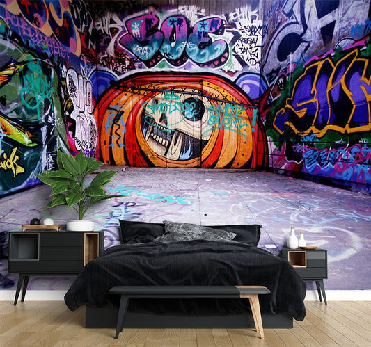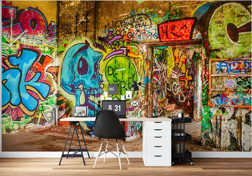 Warehouse Skull Graffiti Multicolour Wallpaper Mural,Self-Adhesive Peel And Stick 3D Wall Paper,Bedroom Designer Wall Decor