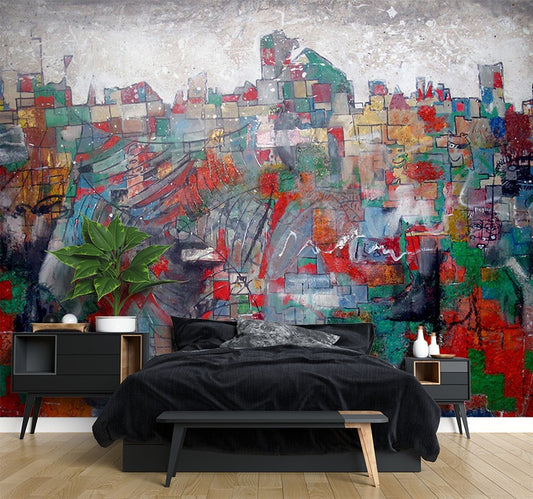 City Scape Graffiti Multicolour Wallpaper Mural,Self-Adhesive Peel And Stick 3D Wall Art,Australian Company Designer Wall Decor