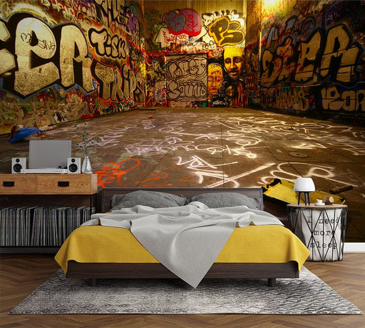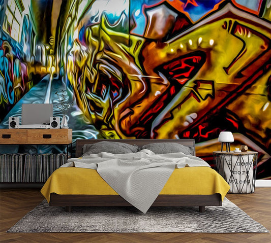Street Drawing Graffiti Multicolour Wallpaper Mural,Self-Adhesive Peel And Stick 3D Wall Art,Bedroom Designer Wall Decor