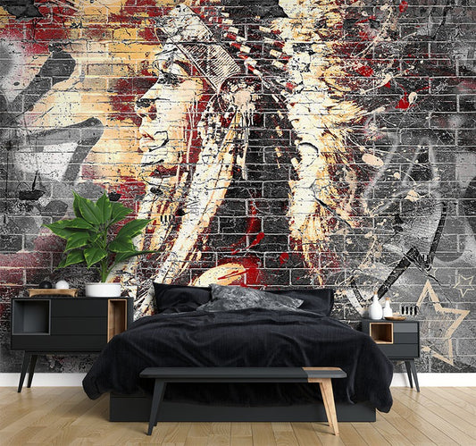 Brick Graffiti Brown Wallpaper Mural