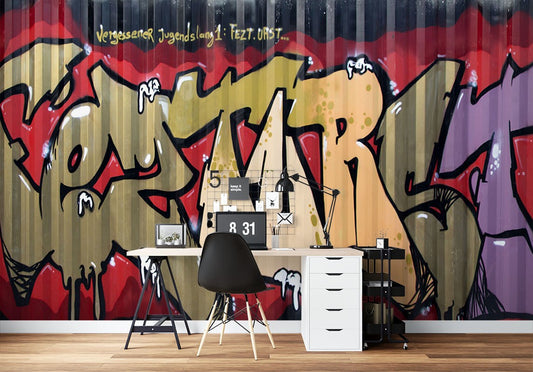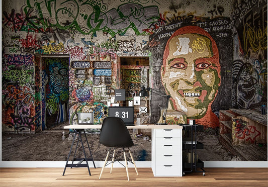 Street Drawing Graffiti Multicolour Wallpaper Mural,Self-Adhesive Peel And Stick 3D Wall Decor,Australian Company Removable Wall Decor