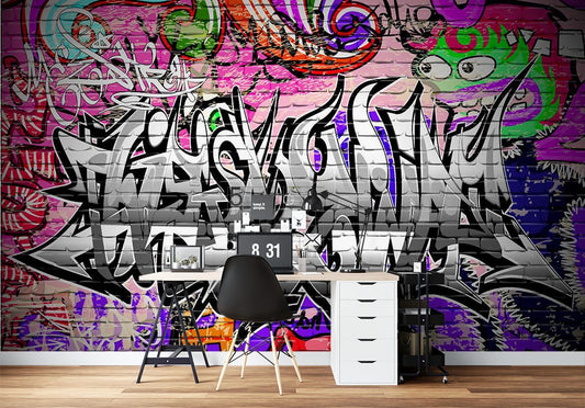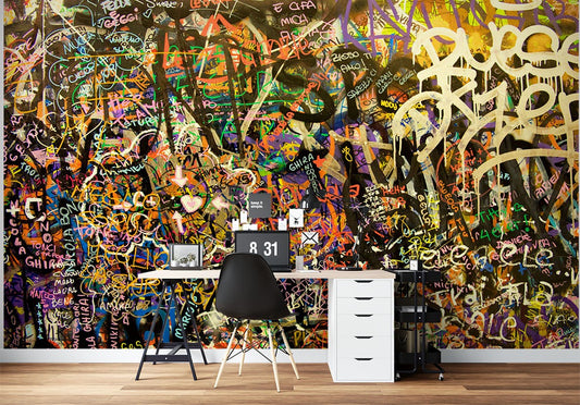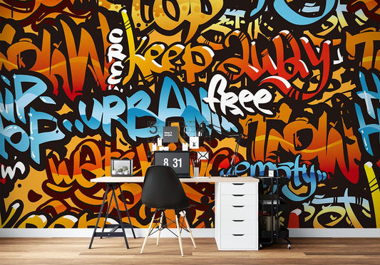 Letter Graffiti Multicolour Wallpaper Mural,Self-Adhesive Peel And Stick 3D Wall Art,Australian Company Removable Wall Decor