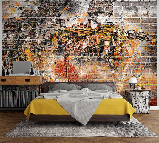 Graffiti Soldier Multicolour Wallpaper Mural,Self-Adhesive Peel And Stick 3D Wall Art,Removable Designer Wall Decor