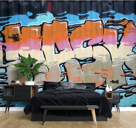 Graffiti Letters Multicolour Wallpaper Mural,Self-Adhesive Peel And Stick 3D Wall Mural,Bedroom Removable Wall Decor