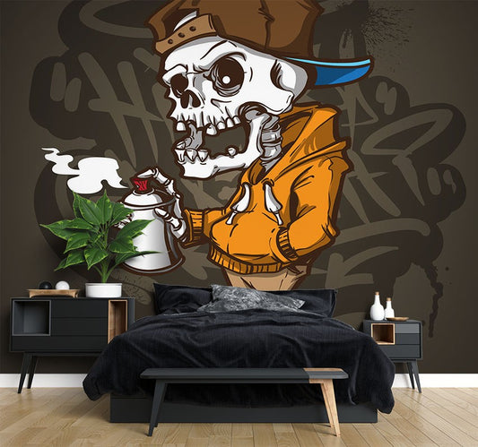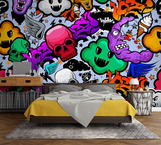 Skeleton Character Graffiti Multicolour Wallpaper Mural,Self-Adhesive Peel And Stick 3D Wall Paper,Australian Company Designer Wall Decor