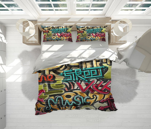 Street Art Duvet Cover Set W Pillow Cover, Multicolour Graffiti Graffiti 3D Quilt Cover, Single Double Queen King Size Doona Cover