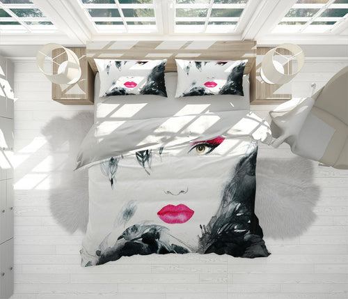Woman Portrait Duvet Cover Set W Pillow Cover, Black And White Graffiti Graffiti 3D Quilt Cover, Single Double Queen King Size Doona Cover