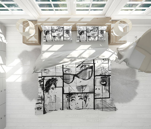 Portrait Comics Duvet Cover Set W Pillow Cover, Black And White Graffiti Graffiti 3D Quilt Cover, Single Double Queen King Size Doona Cover
