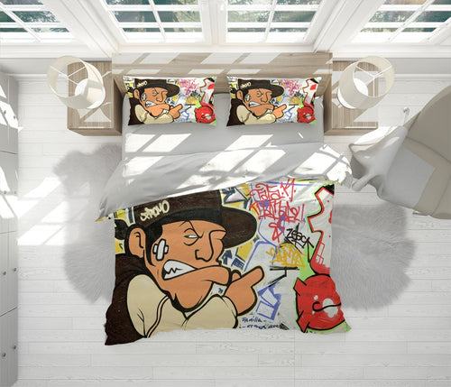 Street Gentleman Duvet Cover Set W Pillow Cover, Multicolour Graffiti Graffiti 3D Quilt Cover, Single Double Queen King Size Doona Cover